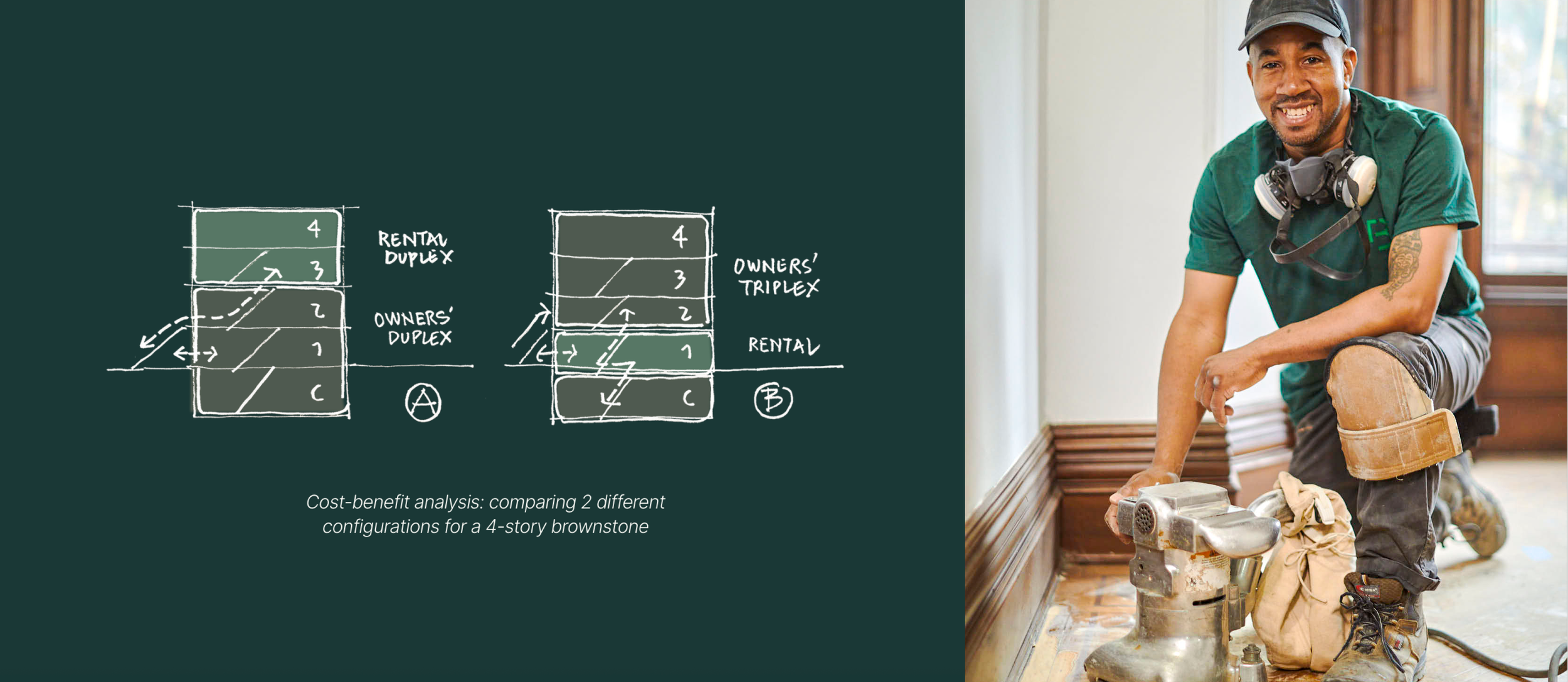 With the tagline "reimagine responsibly," we captured the brand's ethos: renovation as a climate act, sustainability and historic character as mutually reinforcing, the care that serious work requires.